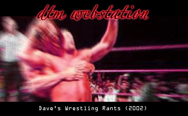 I’m gonna help myself to a Scott Keith quote: “You know things are getting bad when Steve Austin beats his wife, gets a year probation, can’t drink alcohol, can’t leave the county without permission, and he’s STILL the best choice for the guy to save the company at this point. Next to HHH and Big Show, Steve Austin looks like friggin’ Ric Flair in his prime.”