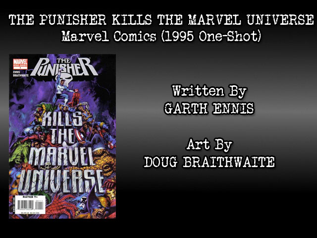 In 1995, Garth Ennis wrote a Punisher comic that saw Frank Castle’s family killed during a battle between the usual Marvel superheroes and an invading alien force. After the superheroes show no remorse for their actions and offer a pitiful apology, Castle goes ape shit and kills a few before he is arrested, taken to jail, broken out of fail, and offered a shitload of weapons and tech to kill all the heroes, becoming the same ol’ Punisher we all know, but with a decidedly different target.