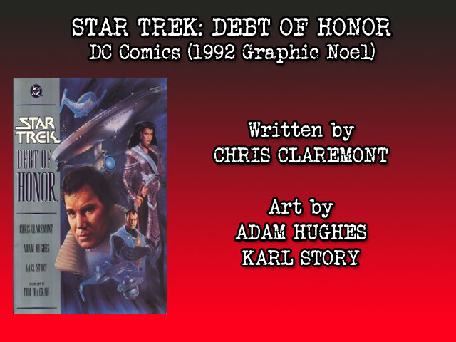 So this is an interesting little beast; a Star Trek movie-era one-shot story published in a prestigious hardcover graphic novel from DC Comics that is basically an excuse to give you as many callbacks, winks, and nods as you could possibly fit within 90+ pages of comic book. To the layman with no clue about Star Trek, this means very little, but to the hardcore Trekkie out there, Debt Of Honor references so many things, features so many guest characters including those who have only been spotlighted in a single episode of Star Trek, and makes so many callbacks to past moments and eras that it almost overwhelms the entire book. It’s usually the worst kind of thing when so many callbacks are made and the whole thing coasts on nostalgia that it detracts from the overall product.