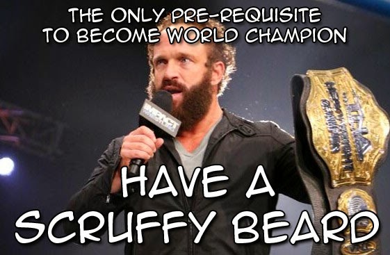 The only reason Eric Young is World Champion has nothing to do with his years of loyalty to the company that put him through some ridiculous and oftentimes embarrassing situations, has nothing to do with his skills and talent, but rather due to the size of his beard. I added a postscript to last Monday’s episode of the DTM-Cast towards the tale end of the episode, about how I was talking with a friend of mine and he brought the prior week’s episode of Impact where Eric Young won a match early on to become no. 1 contender and later on, usurping Magnus to become World Champion. Seeing that I didn’t follow TNA, I thought, “Good for Eric.” ANd then my friend added the last piece of the puzzle and at first, I laughed it off and accused TNA of going to that Xerox machine.
