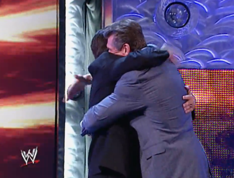 Less than Fun fact: I actually missed out on an earlier chunk of this RAW, which included the very first appearance of Easy E on WWE television. So the shock, as it were, of seeing the former head of WCW appear on a RAW set and hug McMahon was deservedly there. Not necessarily because of seeing Bischoff on stage, although that alone was unexpected… but because he dyed his hair again, despite appearing on WCW a year earlier with his natural gray hair.