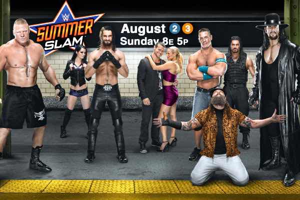 Your promotional poster for next month’s Summerslam event, ladies and gentlemen. Look at all them stock superstar poses on a generic subway background. You know things are bad when the flipping POSTERS look phoned in.