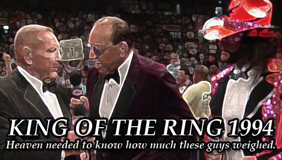 Apparently, the inaugural King Of The Ring PPV event in 1993 was such a resounding success that they decided to have another one and make it something of an annual thing. This would last until 2002 for those keeping count, when Brock Lesnar won and killed the event. Longtime voyeurs of Wrestlecrap will know this show for being the one with football great Art Donovan doing commentary and such a bang up job he does, as well… although poor guy should do a little more prep work. After all, shouldn’t he already know how much these guys weigh?