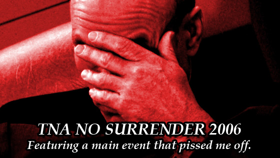 And that pissed me off… which is something that I didn’t expect from a 2006 TNA PPV because LOLTNA and all that. But this whole match, the basic concept of it, the reasoning behind it, the stubborness in sticking with the main event nobody wanted… this match was a complete waste of time. It was done as something to appease the fans who wanted Joe in the title picture, except it didn’t work because the one thing that would’ve appeased those fans who wanted Joe in the title picture was – three guesses – JOE IN THE TITLE PICTURE. Or maybe – ooh, I don’t know… JOE WINNING THE WORLD TITLE IN THE MAIN EVENT, YOU STUPID FUCKS!