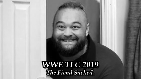 WWE Blue Belt Champion Bray Wyatt… yes, apparently, it’s Bray Wyatt in his sweater who is a totally different character from the guy in the Halloween costume and yet he is still considered the champion. Honestly, questioning that sort of logic is akin to question the logic behind the Faces Of Foley from a generation past so I’ll let it slide. What I won’t slide is this match, which is fucking horrible because nobody knows how grudge matches with personal pride and hatred works. See, Mr. Fiend invaded the Miz’s home and left scary things in his kid’s bed. So Miz is angry and is about to fight the most personal and important battle of his life… except said most personal and important battle of his life is the same formulaic Miz match that he wrestles every time. Comes out to his stupid entrance, waits for the guy in the sweater to make his entrance, and it’s just a boring, nothing happening WWE match like any other. This reminds me of the previous year’s TLC where Rollins and Ambrose had a deep and personal feud that resulted in a grudge match that felt like any other boring WWE match.