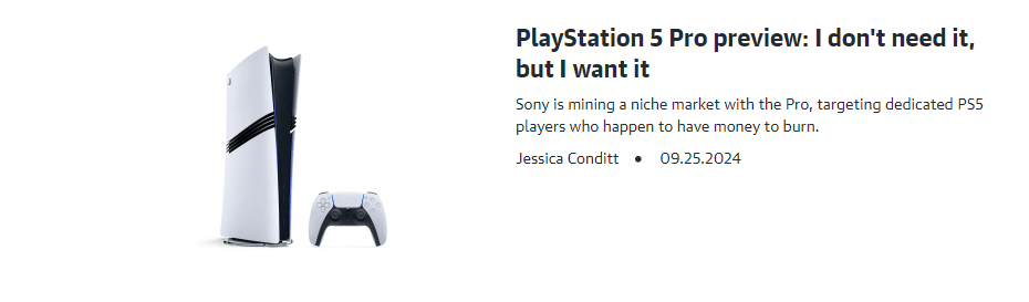 I’m going across Engadget’s gaming section and I notice the above headline, which I’d imagine is a hype article for Sony’s upcoming marginal upgrade to the Playstation 5 that constitutes a “Pro” label and a price hike. The article itself does specify that those who are content with their current PS5 console don’t need a Pro, but for those who want more… well, your mileage may vary on that count, but I haven’t been sold on a PS5 Pro just yet.
