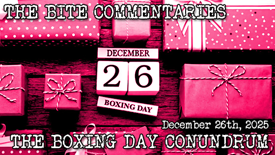 Such a strange thing to be dedicating a Bite commentary to… Boxing Day… but hey, you know what? I figure something a little more light-hearted and jovial would be in order for this series. After all, what’s the point in sticking with depressing subject matters the whole time? Let’s tackle something fun and exciting… like why I no longer do the Boxing Day thing and share some happy moments from when I did the Boxing Day thing.