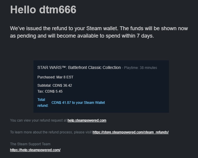So I’ve just got a refund on a pre-order for a ridiculously bloated and completely superfluous version of Star Wars Battlefront I & II with a borked online that I was never going to use and with not enough substantial updates to make me want to give up the old versions that I already have, which work just fine for my needs.