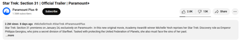 Paramount released another trailer for their Section 31 movie that’s coming out next January… and I will give them credit on delivering a better second trailer that gives me more of a sense of what this thing might be about. I’m still not sold on this movie, it still looks like low-rent trash and not the good kind that’s fun to make fun of, but at the very least, they’ve got a better sales pitch with this second trailer.